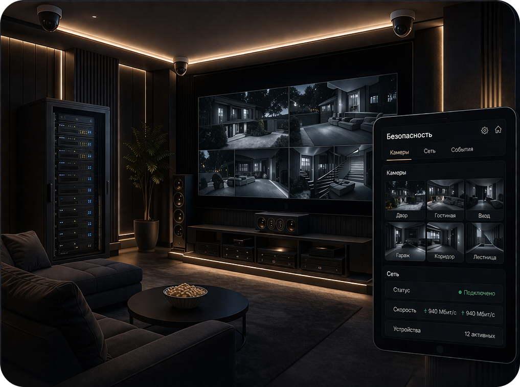 Проектируем надёжные Wi-Fi и сетевые решения, которые обеспечивают стабильную работу автоматизации, мультимедиа и подключённых устройств. Интегрируем видеонаблюдение, удалённый доступ и уведомления в единую систему, чтобы сеть и безопасность работали устойчиво и прозрачно для пользователя.